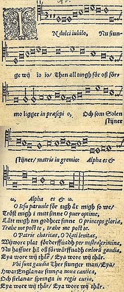 ‘The melody ‘In Dulci Jubilo’ as published in the 1582 Finnish music collection Piae Cantiones, which alternates the Latin with Swedish.