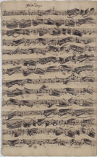 Autograph manuscript of the obbligato piccolo violino part of the first soprano-bass aria, one of the few surviving instrumental parts written by Bach, from the archives of the Thomaskirche